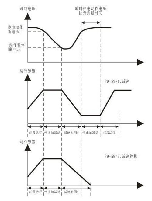 6.1此功效只在停电刹时变频器不会毛病停机,而是下降输入频次,经由过程负载回馈能量,补充电压下降,以保持变频器短时候内持续任务。