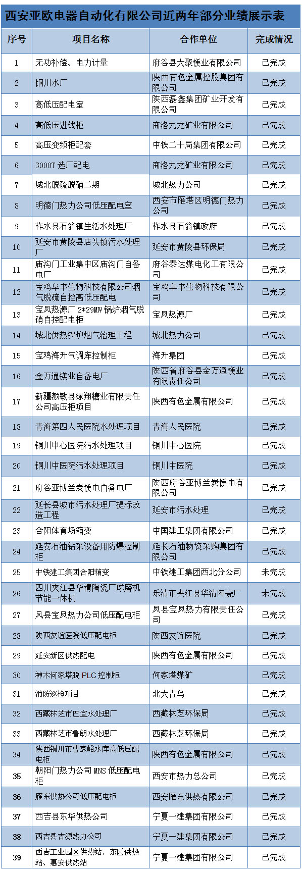 西安亚欧电气装备团体无限公司近两年局部事迹展现表